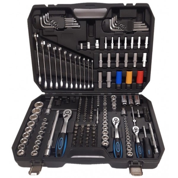 Įrankių rinkinys su terkšliniais raktais 198vnt. 1/4" 3/8" 1/2"