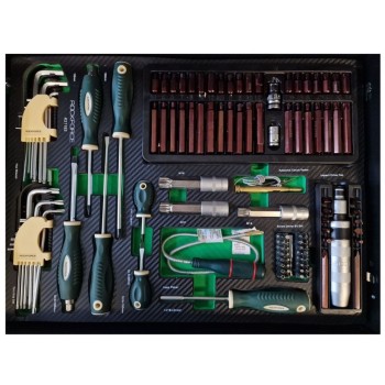 Šis modelis pasižymi centriniu užraktu, užtikrinančiu saugumą, ir sustiprintomis stalčių bėgeliais, leidžiančiais sklandžiai juos atidaryti. Į komplektą įeina visi svarbiausi įrankiai: raktai, atsuktuvai, replės, galvutės, bitų rinkiniai, suktuvų antgaliai, testeriai, žnyplės ir kt.
