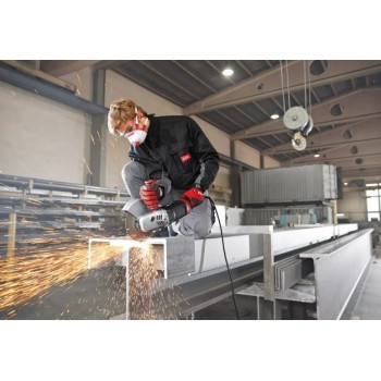 Komplekte: Šlifavimo apsauga, SoftVib šoninė rankena, M14 beraktė veržlė, šešiakampis raktas, flanšas