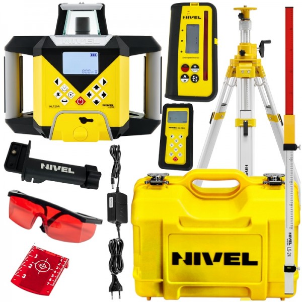 Nivelyras nustato horizontaliąją plokštumą (su galimybe skaitmeniškai pakreipti 2 ašimis). Įrangoje įrengta automatinė lazerio spindulių derinimo sistema. Naudodamiesi šia funkcija galite lengvai nustatyti gradientus (horizontalus darbas) arba rasti kryptį (vertikalus darbas). Lazeris gerai veikia dideliais atstumais (700 m diapazonas), sudėtingomis reljefo sąlygomis – jis greitai išsilygina ir yra atsparus reljefo vibracijai. NL720R DIGITAL standartiškai siūlomas su jutikliu, kuriame aukščio skirtumai rodomi skaitmeniniu būdu. Tai labai supaprastina ir pagreitina matavimus. Įranga turi intuityvią sąsają su LCD ekranu, todėl ją galima valdyti nuotoliniu būdu per radijo nuotolinio valdymo pultą.