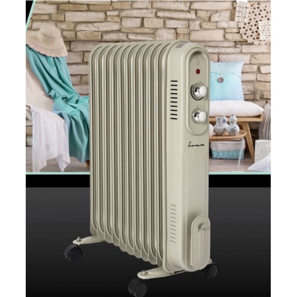 Alyvuotas radiatorius Fram FOH-YR11BG, 11 elementų, 2500 W, 3 šilumos nustatymai, reguliuojamas termostatas, apsauga nuo perkaitimo, kreminė spalva