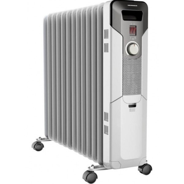 Alyvuotas radiatorius Heinner HOH-Y13S, 13 elementų 150 x 580 mm, 3 šilumos nustatymai: 1000/1500/2500 W, apsauga nuo perkaitimo, reguliuojamas termostatas, maitinimo indikatorius, ratukai lengvam manevravimui